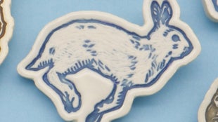 【林麻依子】チャリティ限定作品 陶器ブローチ(跳ねるウサギ)
