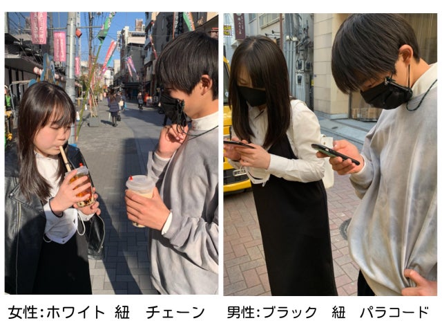 左:ブラック×グリーン 自在結び 右:ブラック×ホワイト ぶた鼻ストッパー