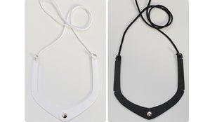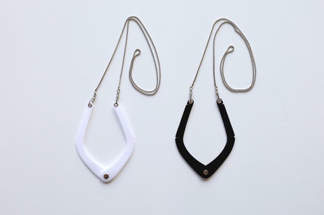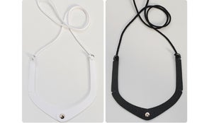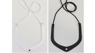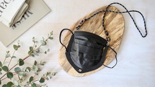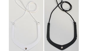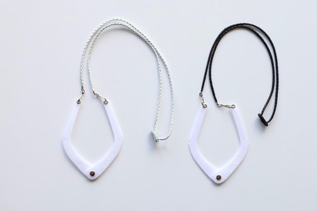 マスクホルダーに市販の不織布マスクを装着し、ストラップを首から下げるだけ。