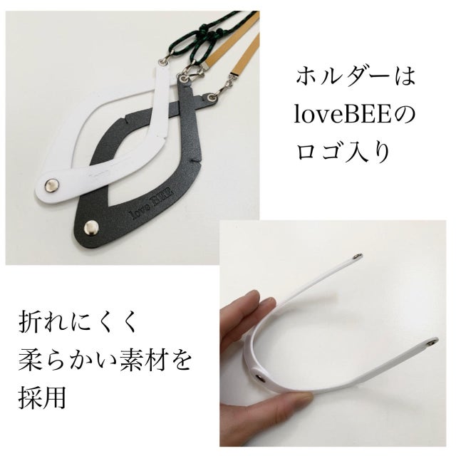 【早割】15%オフ「loveBEEのマスクホルダー」牛革ひもストラップタイプ1個