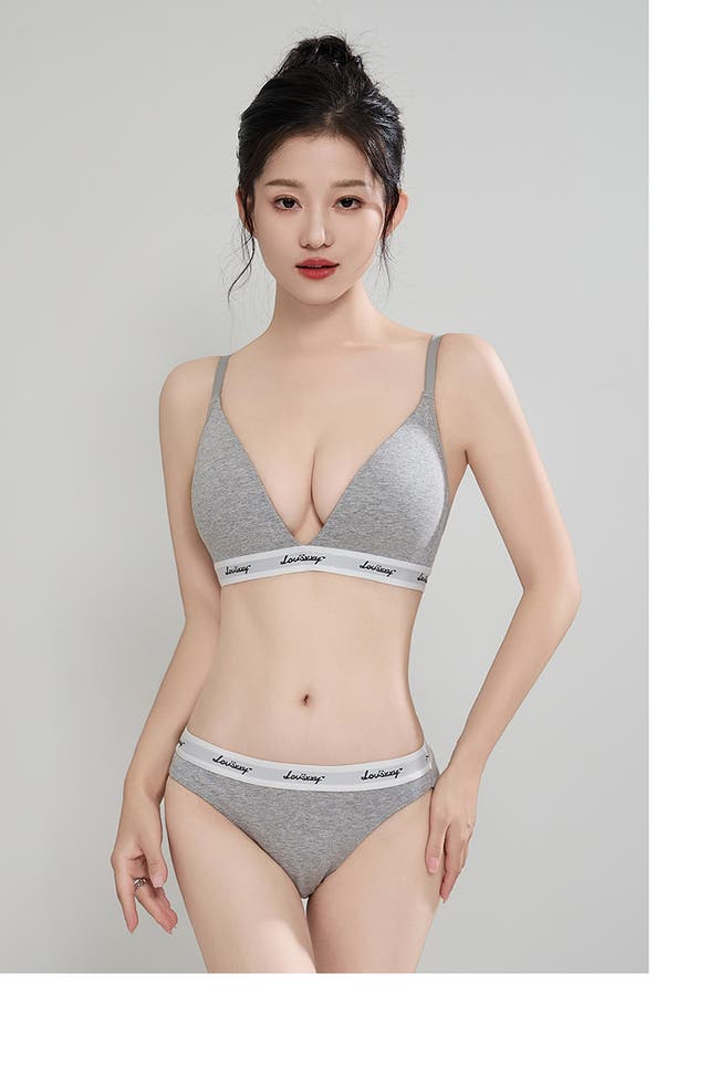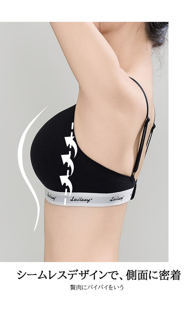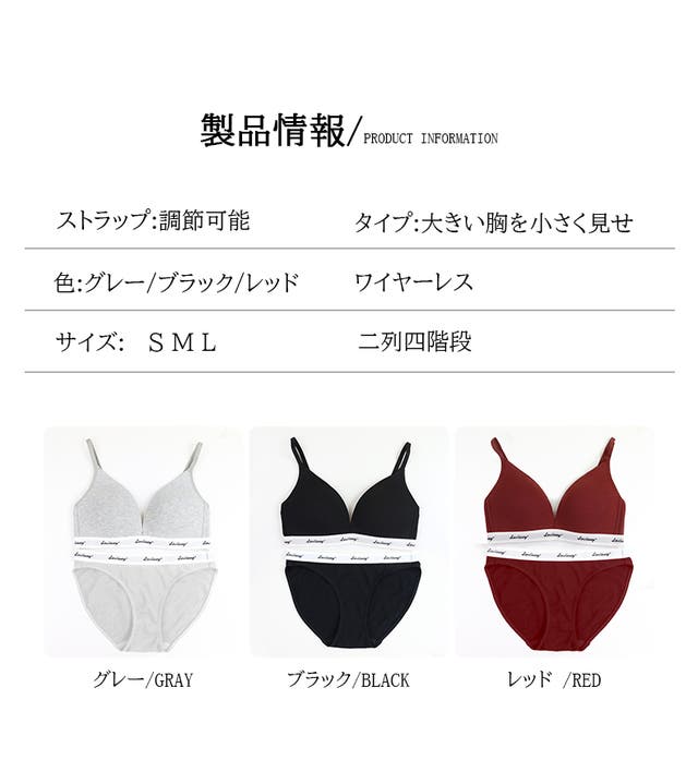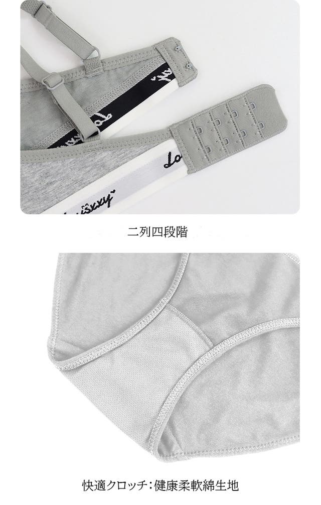 【【フィット感!!】クールでセクシーノンワイヤブラジャー&ショーツセット】これはノンワイヤーでノーホックのブラジャーで、アンダーラインに特別なアルファベットデザインが施されています。細い肩紐にもフィットし、締め付け感がなく快適です。そのデザインは美しさと機能性を兼ね備えており、着用者の快適さを最優先としています。