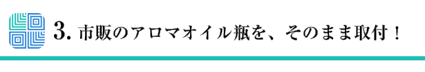 アロマエッセンシャルオイルがあれば、手間なく瓶ごと取付!。