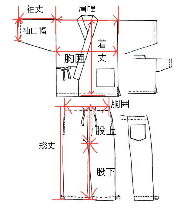 作務衣は洋服よりもゆとりのある作りとなっておりますが、通常の洋服を選ぶ際と同じサイズを選んでいただいて問題ございません。