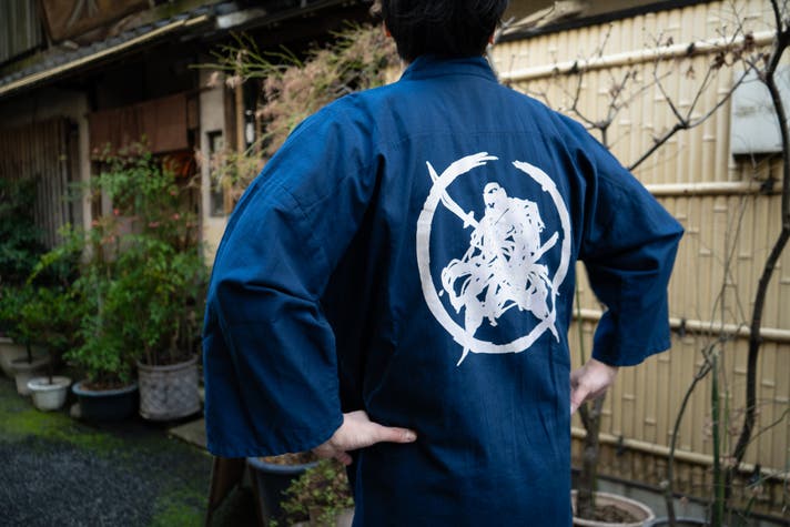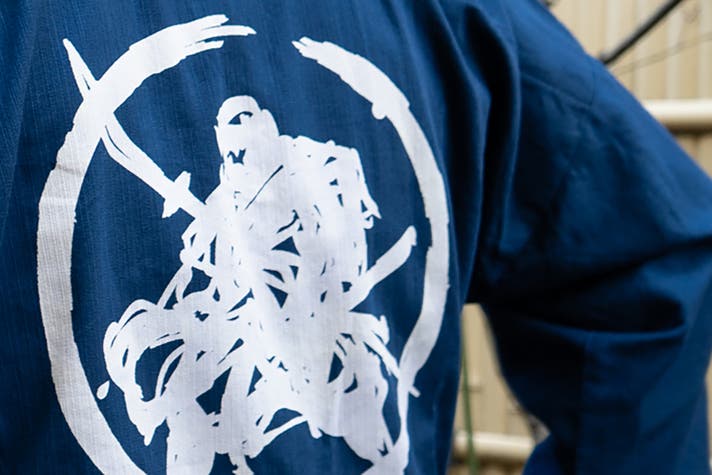 上着の後ろには伊吹オリジナルの紋章紙パッチが。