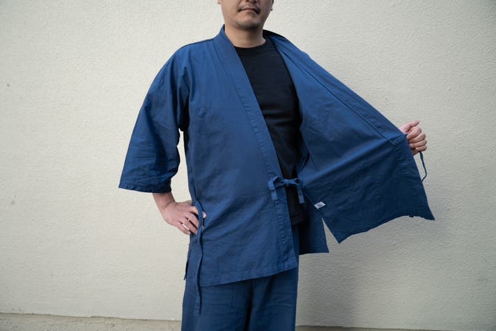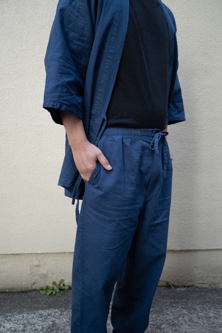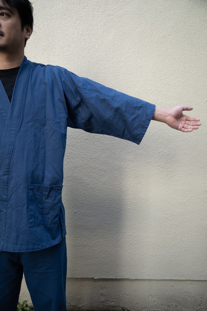 正直に言うと、作務衣に対して少し古くさいイメージを持っていましたが、この作務衣のデニム生地が軽くて見栄えも良くて、日常で和装を取り入れるハードルが下がりました。意外と部屋着で着るのにいいのではないかと改めました。とにかく快適で病みつきになるんです。いつも適当なスウェットを着ていたのですが、今回作務衣の魅力に気付けてよかったです。
