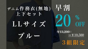 早割「先行販売3組」デニム作務衣(無地)1組【ブルーLL】20%OFF