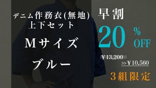 早割「先行販売3組」デニム作務衣(無地)1組【ブルーM】20%OFF