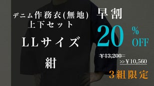 早割「先行販売3組」デニム抜染作務衣1組【ブルーLL】20%OFF