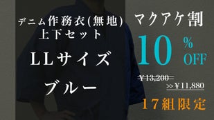 Makuake割「先行販売17組」デニム作務衣(無地)【ブルーLL】10%オフ