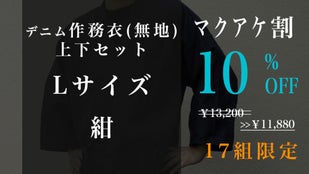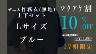 Makuake割「先行販売17組」デニム作務衣(無地)1組【ブルーL】10%オフ