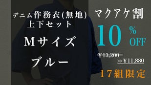 Makuake割「先行販売17組」デニム作務衣(無地)1組【ブルーM】10%オフ