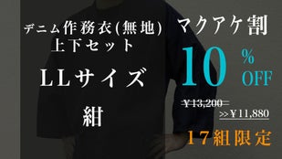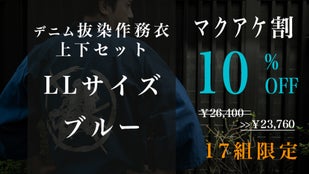 Makuake割「先行販売17組」デニム抜染作務衣1組【ブルーLL】10%OFF