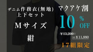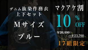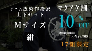 Makuake割「先行販売17組」デニム抜染作務衣1組【ブルーM】10%OFF