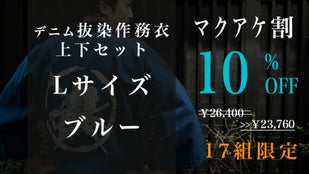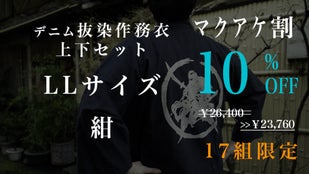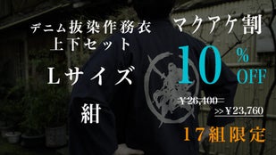 Makuake割「先行販売17組」デニム抜染作務衣1組【ブルーL】10%OFF