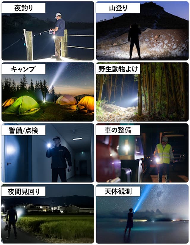 夜道の散策やアウトドア、レジャーだけでなく、災害時や野生動物の警戒にも強く遠くまで届く光が役に立ちます。