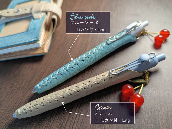 - 小さな幸せを感じるクリームソーダをイメージした、爽やかで上質な本革仕立てのペンカバー