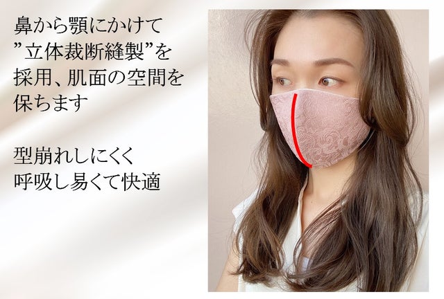 鼻から顎にかけて、立体的なカーブを付けており、顔全体を美しく覆います。
