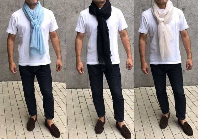 チクチクしない肌触り、フワっと巻けます。Tシャツジーンズにアクセント