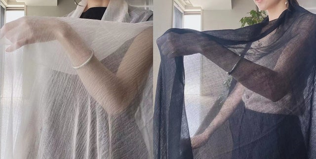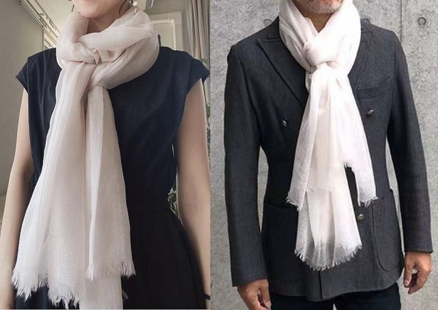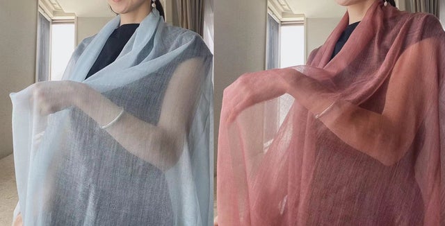 超極細カシミヤ糸で紡がれたストールは透き通るほど繊細でなんと約50gの