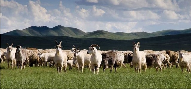 原材料となるカシミヤ山羊は、主にアジア大陸の寒暖差が激しい山岳地方に生息。冬季には氷点下40℃にまで下がる厳しい環境下で、極寒から身を守るため、剛毛の下にやわらかなうぶ毛を蓄えます。そのうぶ毛が、カシミヤ製品の原材料となります。