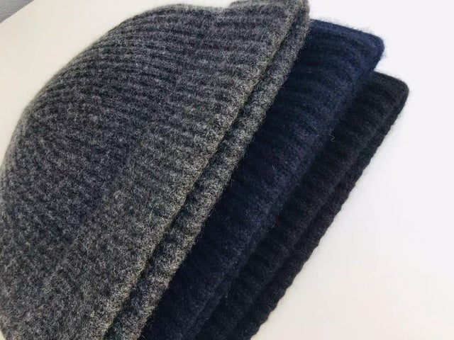 秋から冬にかけて徐々に寒くなってきているこの季節。夏から秋までの帽子はキャップでしたが、この時期はやはりニット帽子に手がのびます。何と言っても耳までカバー出来て暖かい。そしてウールや化繊のニット帽子ですと、被っている時にチクチクして痒くなった経験がある方が少なくはないはず。カシミヤはチクチクしないので痒くなりません。この帽子の形はカジュアルでもドレスでも被れるシンプルな飽きがこないシンプルなデザイン。男女ともに使えるデザイン。カラーは3色。ブラック、ネイビー、ミディアムグレー。男女問わず合わせやすいカラーです。