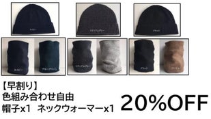 【早割り20%OFF】カシミヤリブニット帽1個ネックウォーマー1個のセット