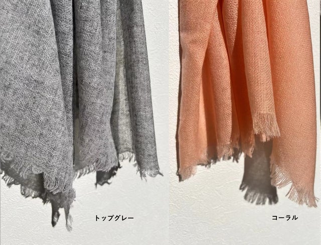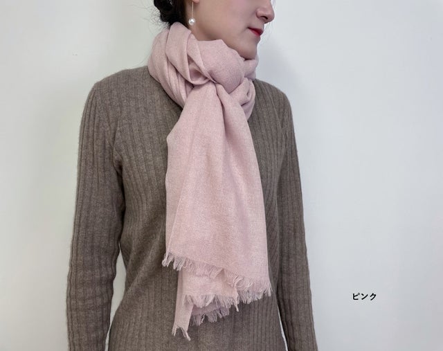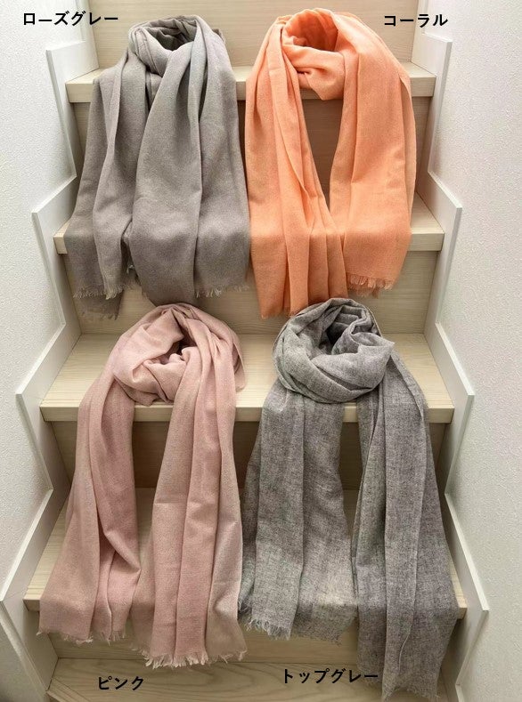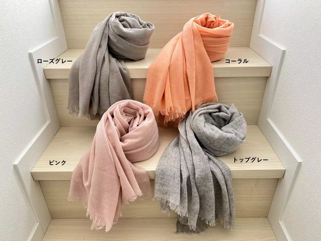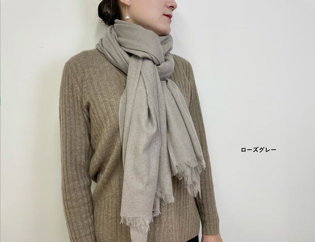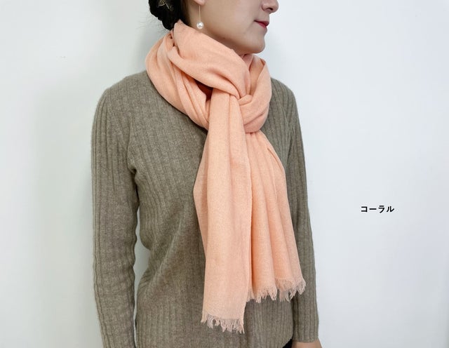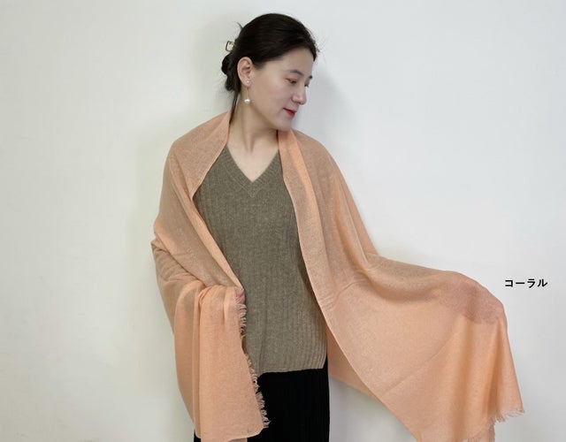 - 細番手カシミヤは約120gの軽さでスカーフ感覚。室内屋外、軽く巻く、羽織ってお洒落UP防寒UP