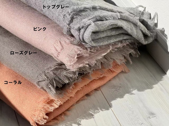 完成したカシミヤストール【トップグレー】【ローズグレー】