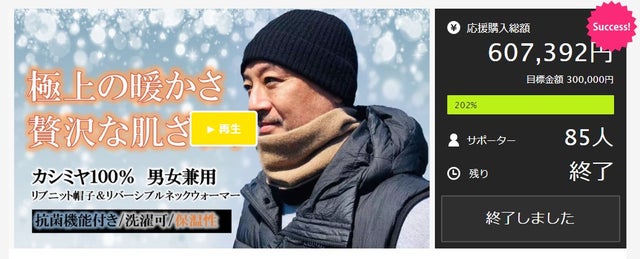 2018年より服飾雑貨、企画開発・生産をしています。今回はカシミヤの帽子とネックウォーマーを企画しました。長い間様々なブランドのオリジナルを生産しております。私たちのスタートはカシミヤから始まっており、品質、技術、デザイン、価格どれも欠けることなく追及し続けております。現在、アパレル業界全体非常に厳しく、それを生産す工場も同じ状況。そんな時だからこそ、皆様のお力をおかりし、私たちが培ってきたカシミヤの商品、上質な商品を、お求めやすい価格で多くの人に体感して頂きたく企画しております。