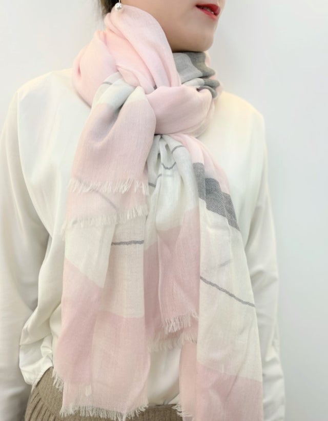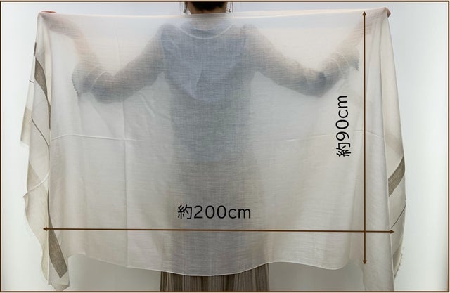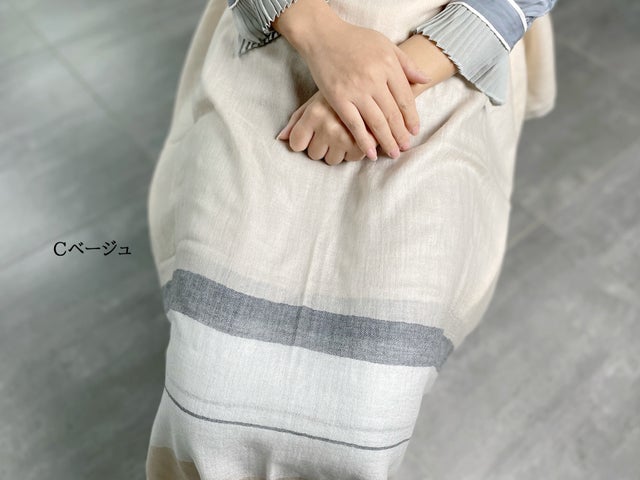 - 細番手200番双糸ストールは約70gの軽さでスカーフ感覚。室内屋外、軽く羽織りお洒落防寒UP!