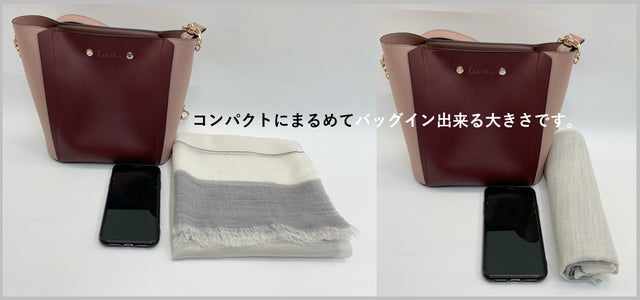 バッグにたてて収納で。すっぽり入ります。 ストールの重さは約70g
