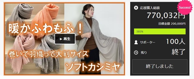 2018年より服飾雑貨、企画開発・生産をしています。今回はカシミヤの帽子とネックウォーマーを企画しました。長い間様々なブランドのオリジナルを生産しております。私たちのスタートはカシミヤから始まっており、品質、技術、デザイン、価格どれも欠けることなく追及し続けております。現在、アパレル業界全体非常に厳しく、それを生産す工場も同じ状況。そんな時だからこそ、皆様のお力をおかりし、私たちが培ってきたカシミヤの商品、上質な商品を、お求めやすい価格で多くの人に体感して頂きたく企画しております。