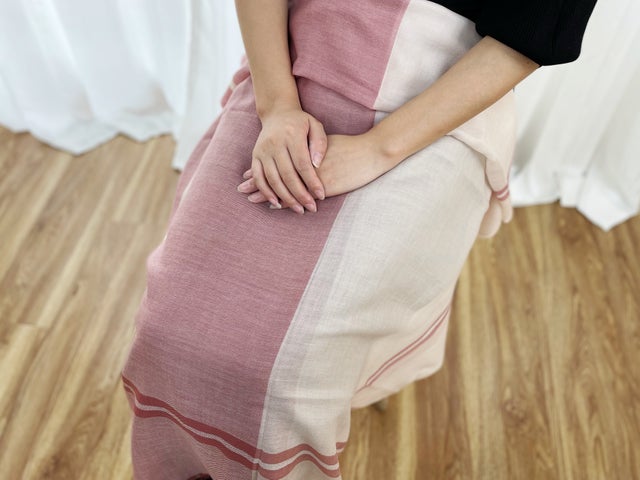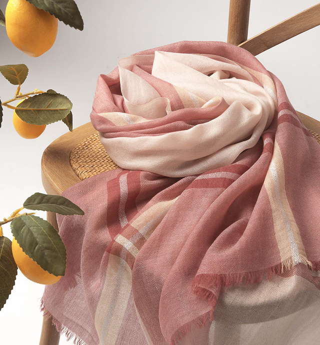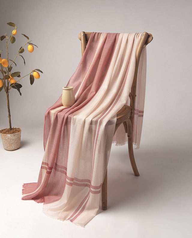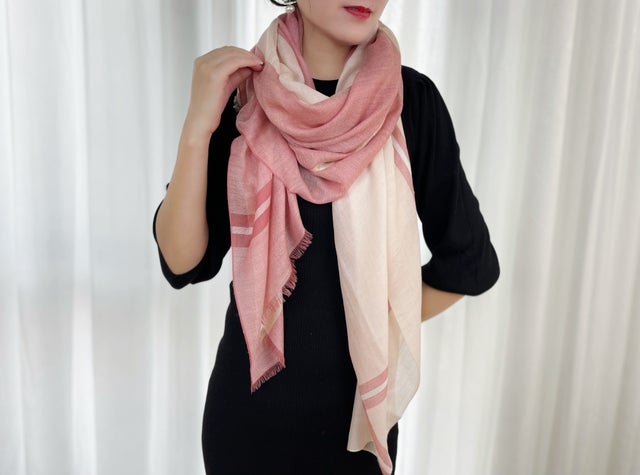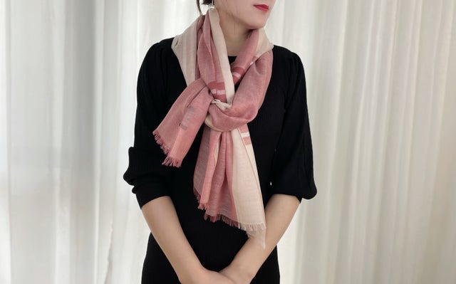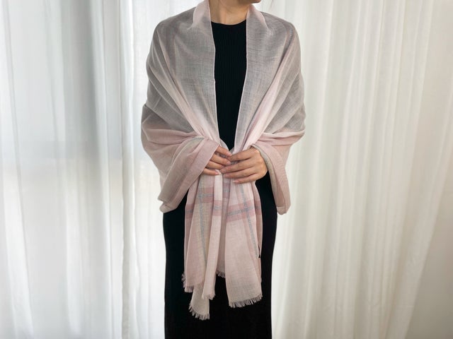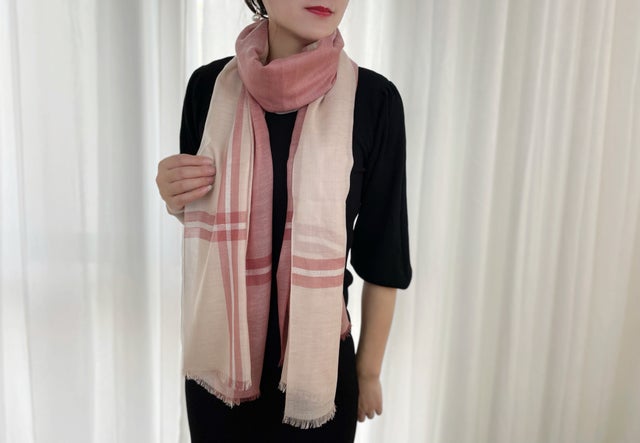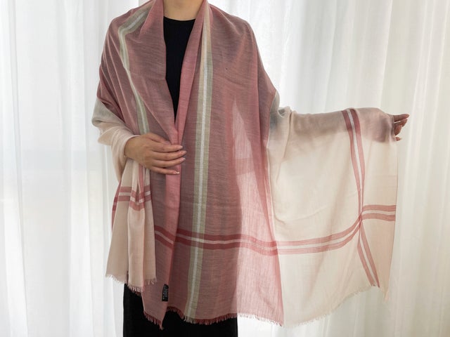 【Makuake価格】ラインチェックカシミヤストール1テンダーピンク