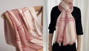 【超超早割り】ラインチェックカシミヤストール1テンダーピンク