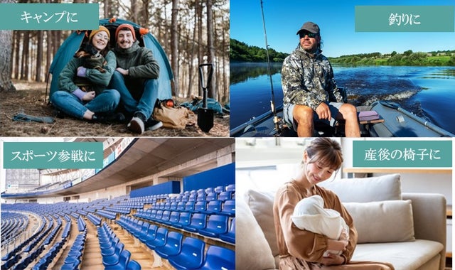 - 家、職場、車シート、車椅子、産後のケア、キャンプ、レジャー、スポーツ観戦あらゆる状況でサポート