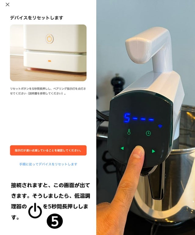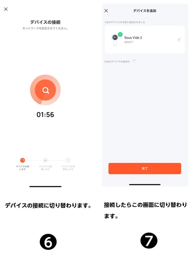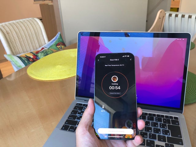 低温調理器を使う上で、調理スタート温度になるまで目視で何回も見て確認することが少なくありません。今は何度かな?あと少しかな? このような経験をされている方も少なくはありませんよね。そこで、スマートホント連携すれば、簡単に温度、時間が確認できて他の事に時間が使えます。なんと言っても遠隔操作が出来るので、非常に便利です。