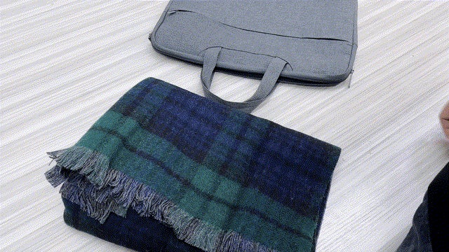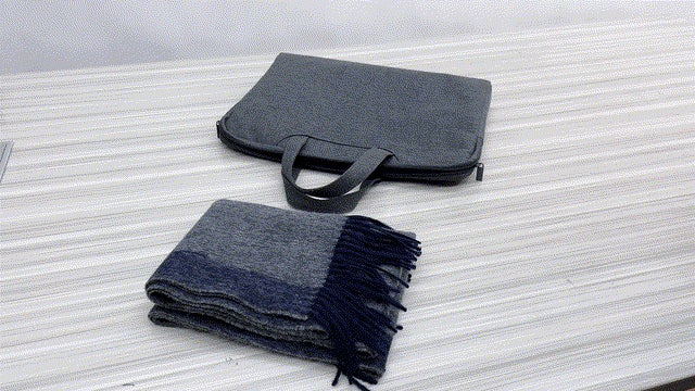 弊社のピュアーベビーウールマフラーは嵩張らず、外出先でもササッとカバンの中にしまえ携行に便利です。