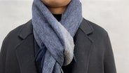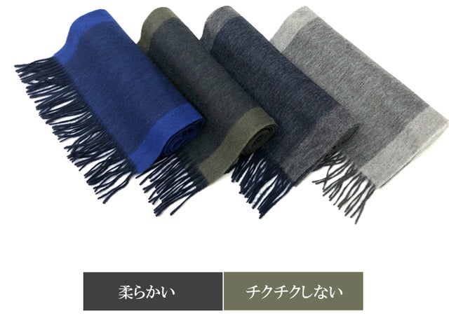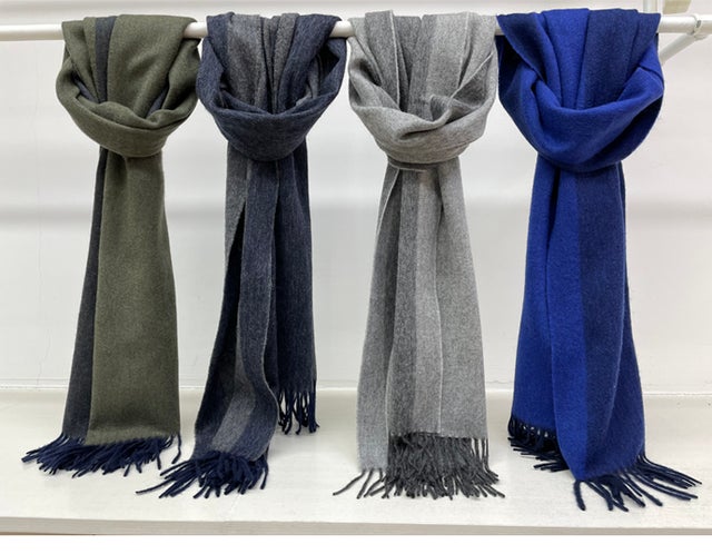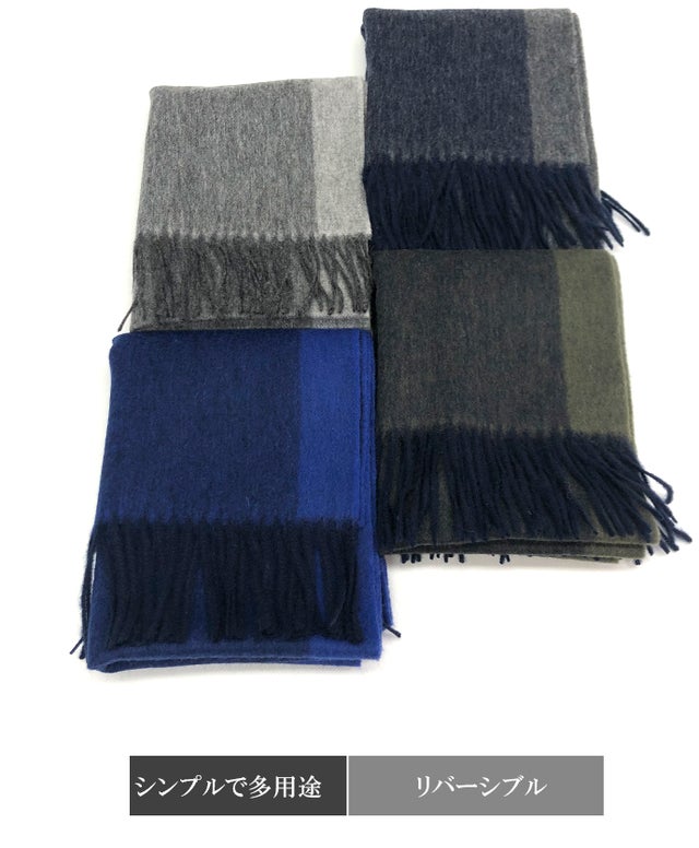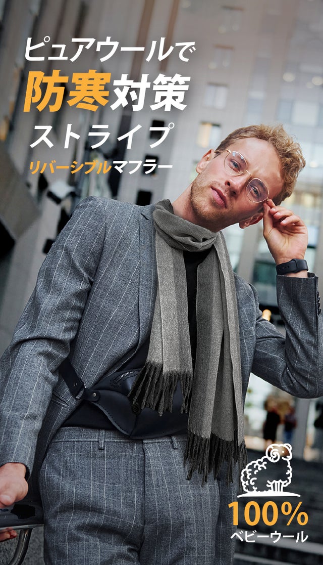 - 内モンゴル産の上質のベビーウールを使用したストライプリバーシブルマフラー。男らしさの演出に!