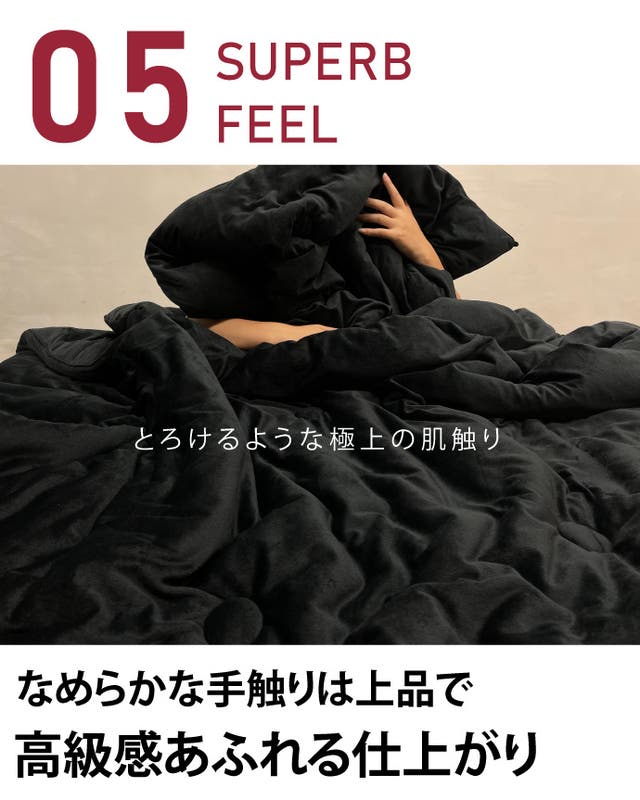 肌に触れる表面の生地にはクリスタル・ベルベット!起毛素材で暖かく極上の肌触り!