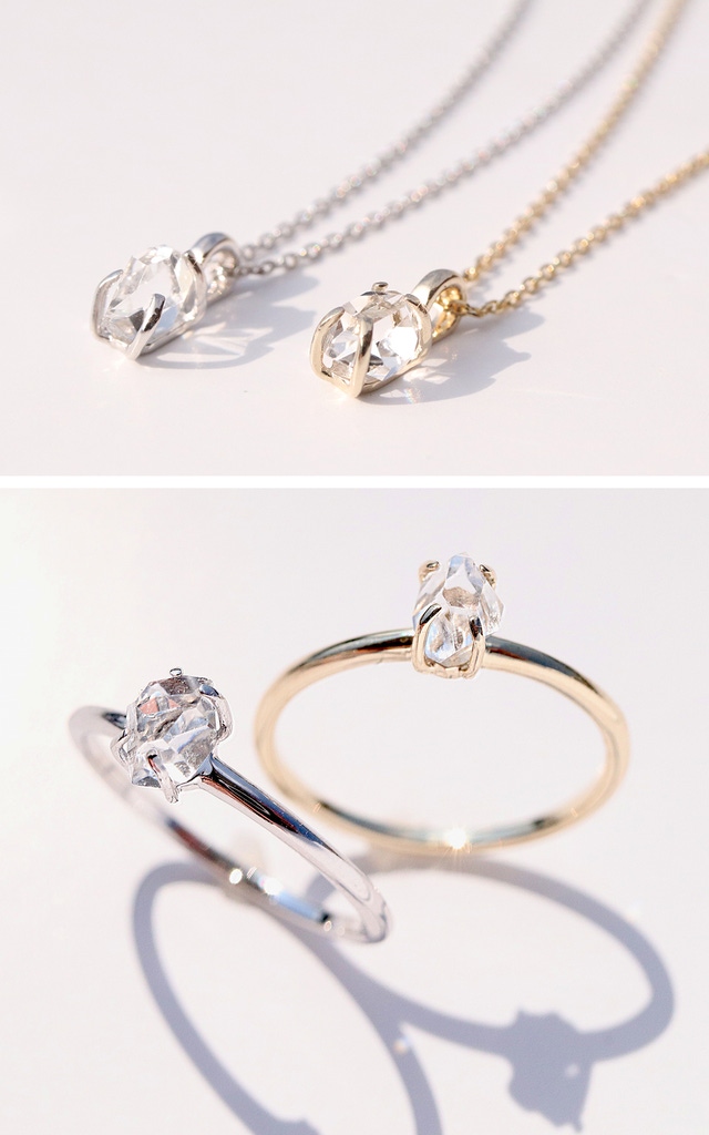 ※ハーキマーダイヤモンドは、掘り出されたままの姿の宝石を石留しているため、