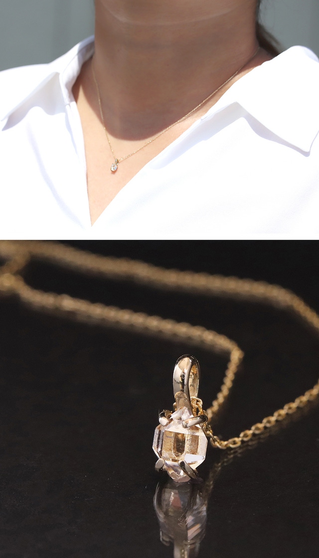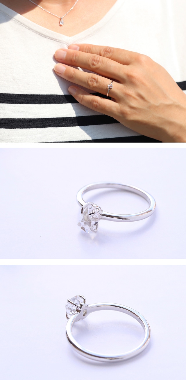 ※ハーキマーダイヤモンドの中でも、トップクオリティの石をセレクトしていますが、若干のカーボンや濁りがある場合がございます。