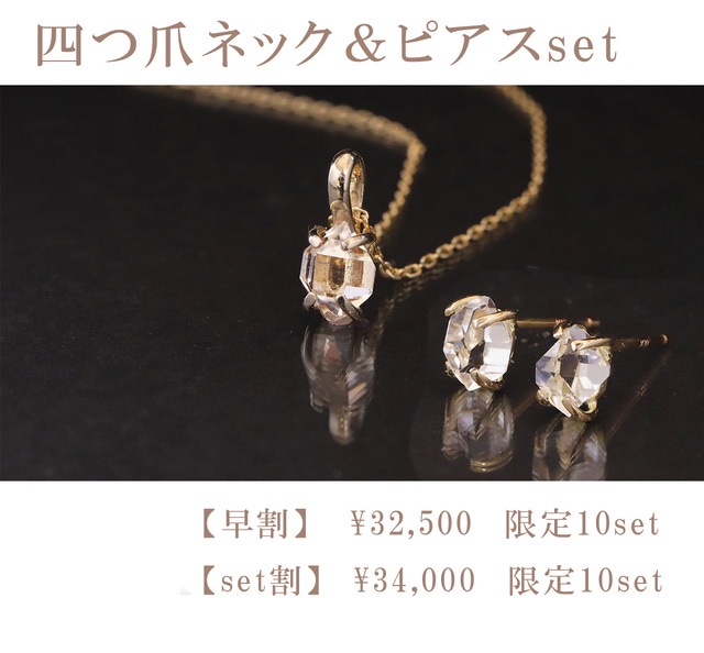 【早割】四つ爪ネック&ピアスset K10YGまたはK10WG