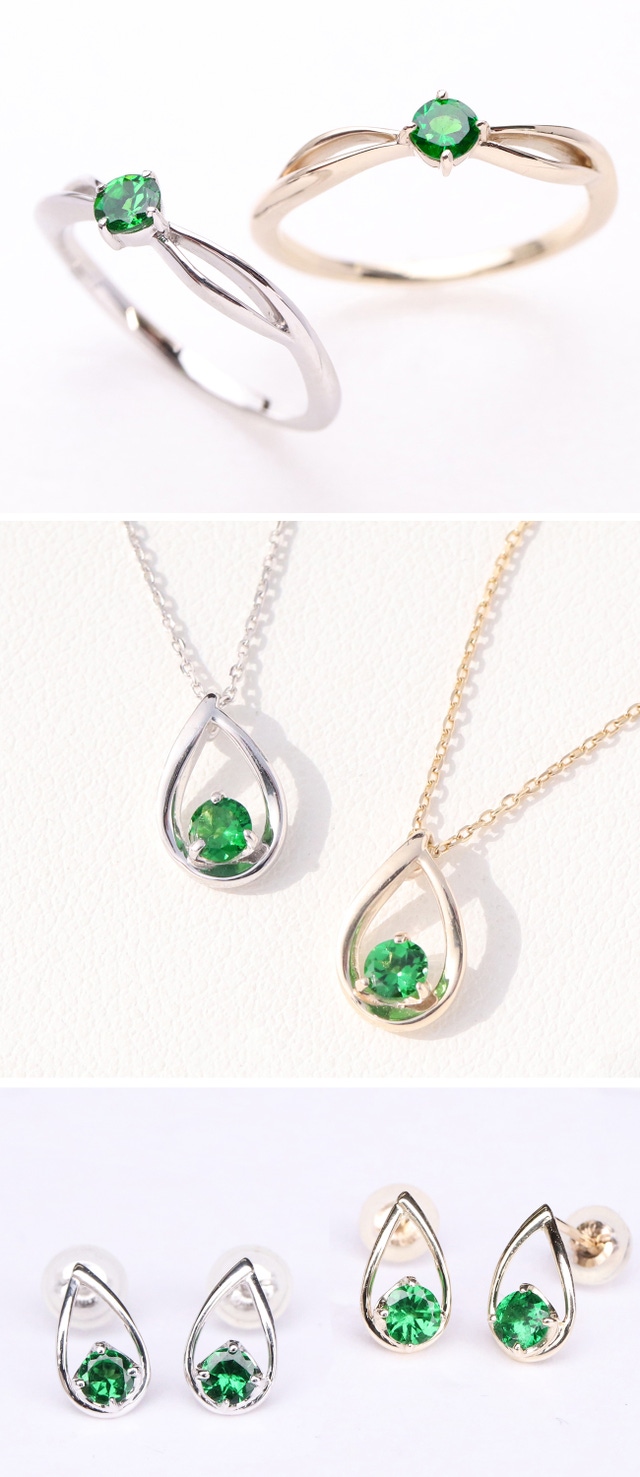 パッと目を引く力強いグリーンカラーの宝石に、ツァボライトのジュエリーでコーディネートしませんか。