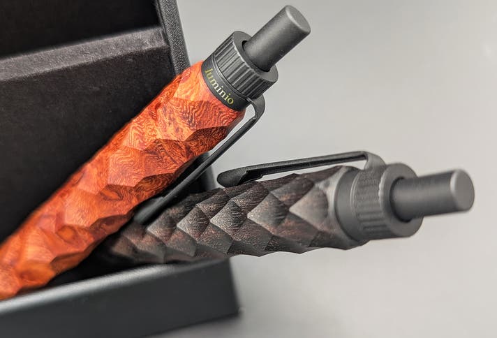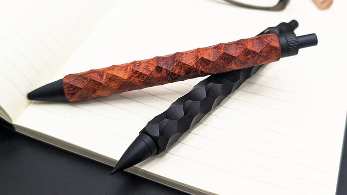 - 縄文時代から続く日本の伝統文様を、稀少銘木に刻む他に類を見ない木軸ペン