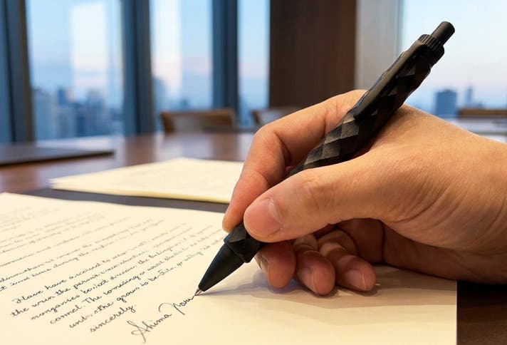 重要な契約書にサインする瞬間。