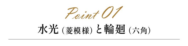 - 水光(菱模様)と輪廻(六角)。縁起の良い吉祥文様を職人が一本一本手作業で削り出し