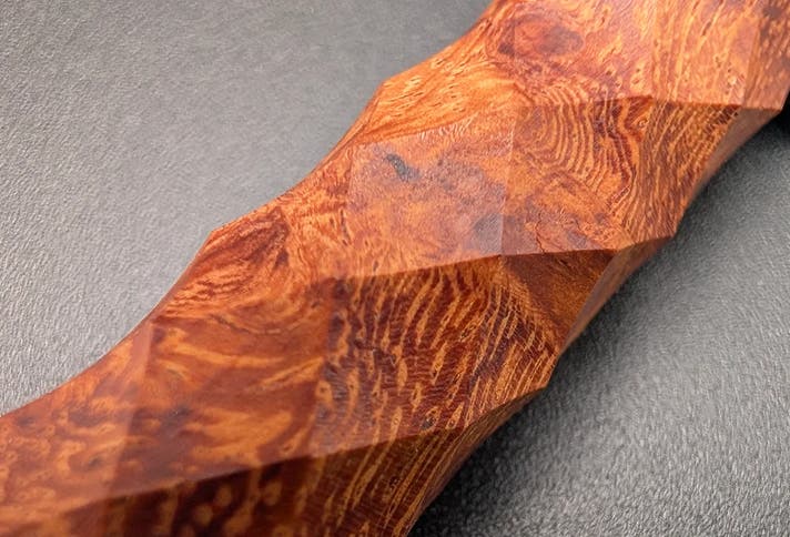 使われるのは、花梨瘤と縞黒檀という高級稀少杢。