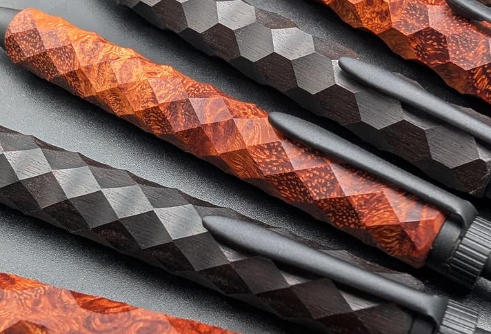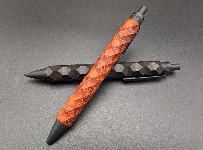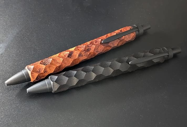 - 縄文時代から続く日本の伝統文様を、稀少銘木に刻む他に類を見ない木軸ペン