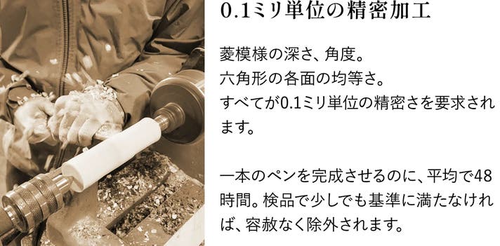 それらが、200年の時を刻む銘木と出会い、職人の手によって一本のペンへと昇華される。
