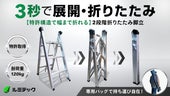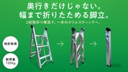 - 【脚立がスティックに!】特許技術の“奥行×幅の二段階折りたたみ”で、スリムなスティック状に変形